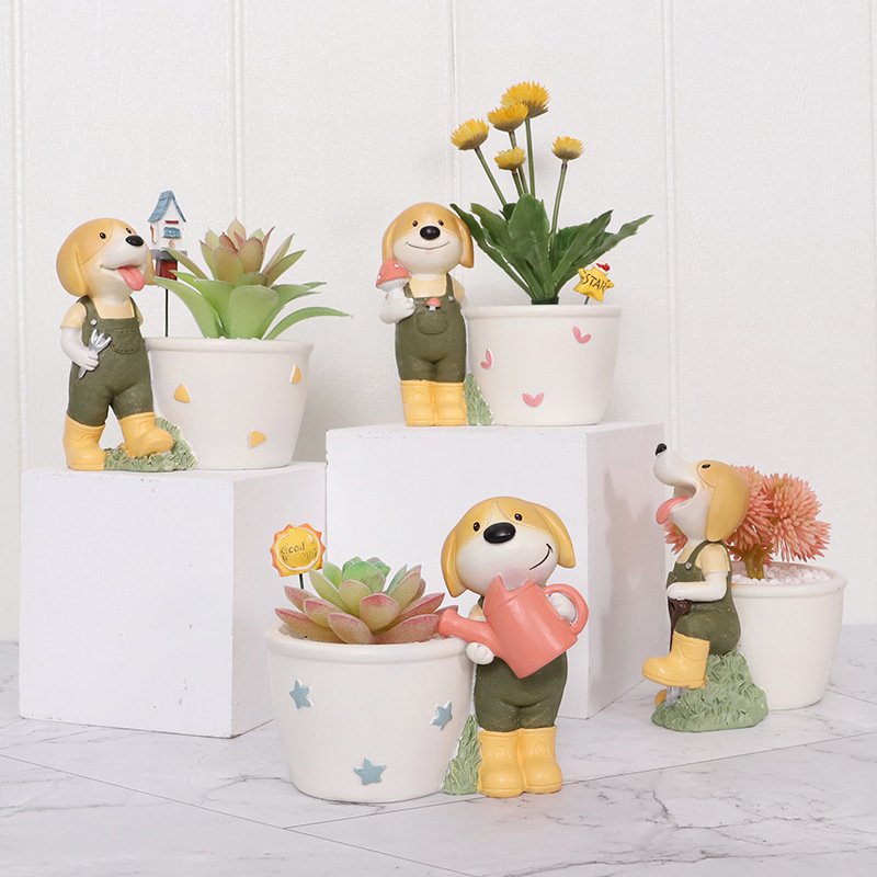 Macetas Perros Jardinero | Macetas para Suculentas de Resina