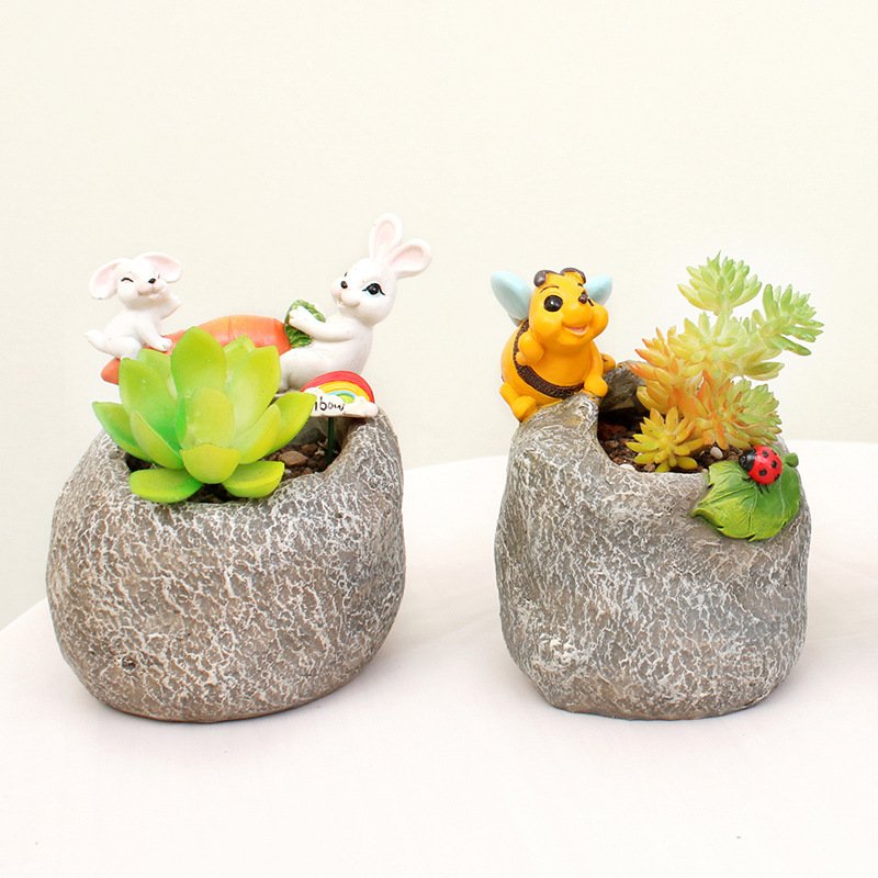Macetas con Diseño de Dibujos Animados y Plantas Artificiales 🐰🐻🌵