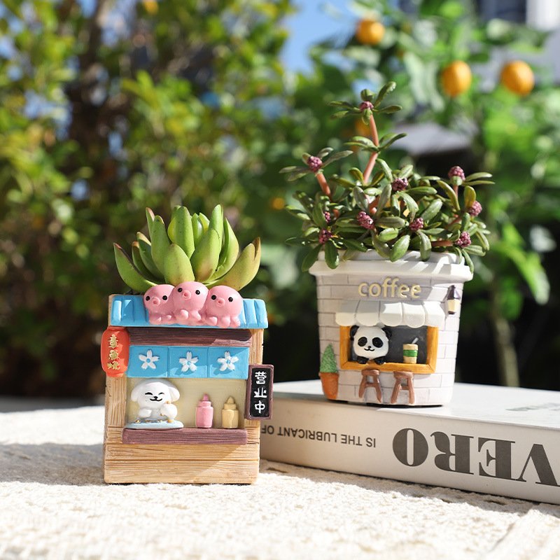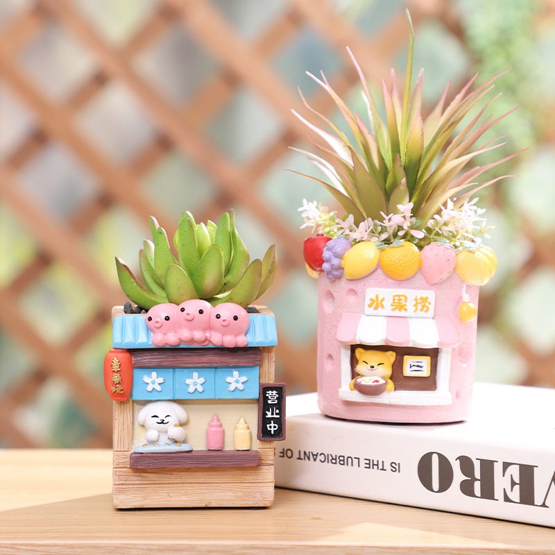 Macetas con Diseño de Dibujos Animados y Plantas Artificiales 🐰🐻🌵