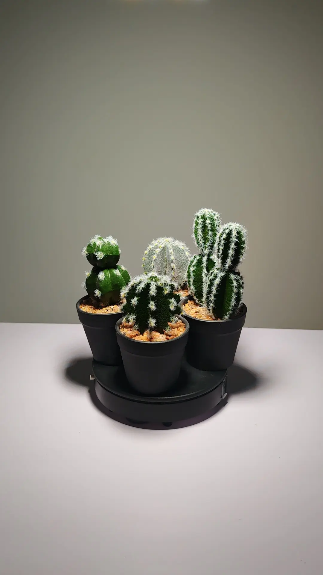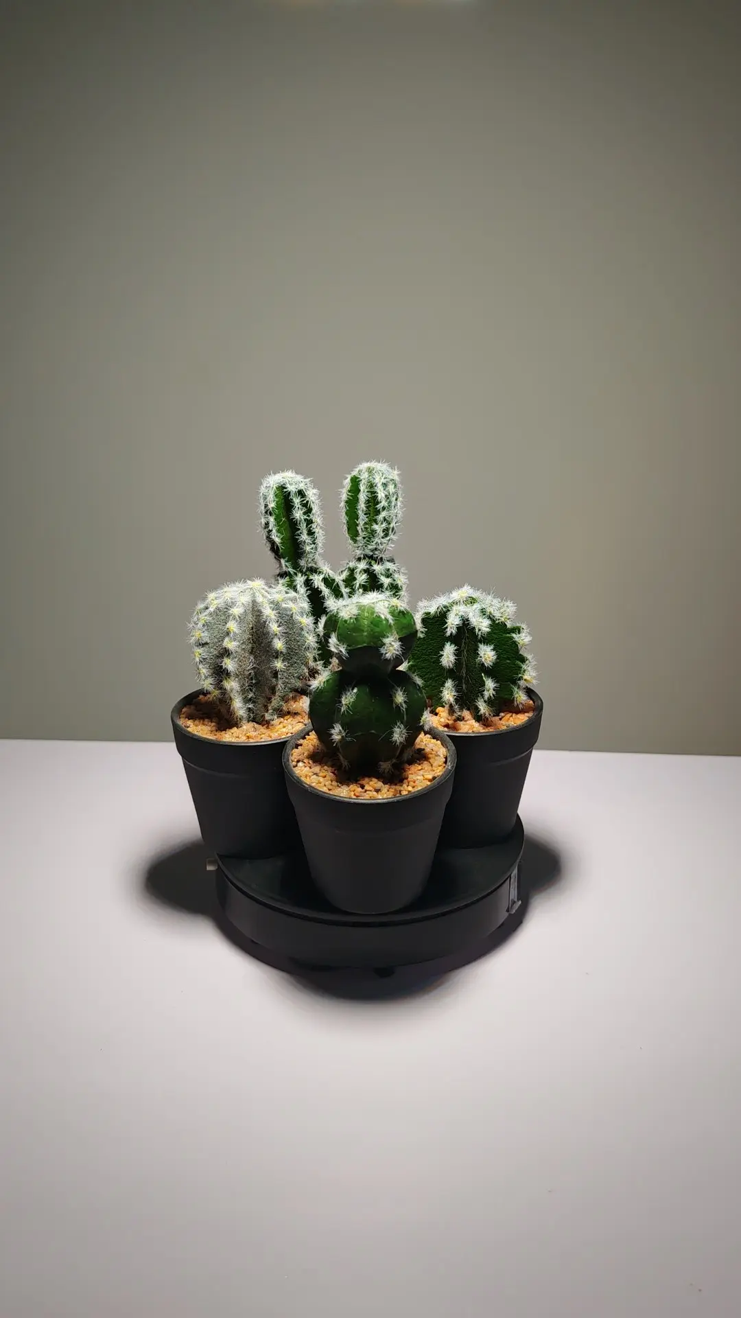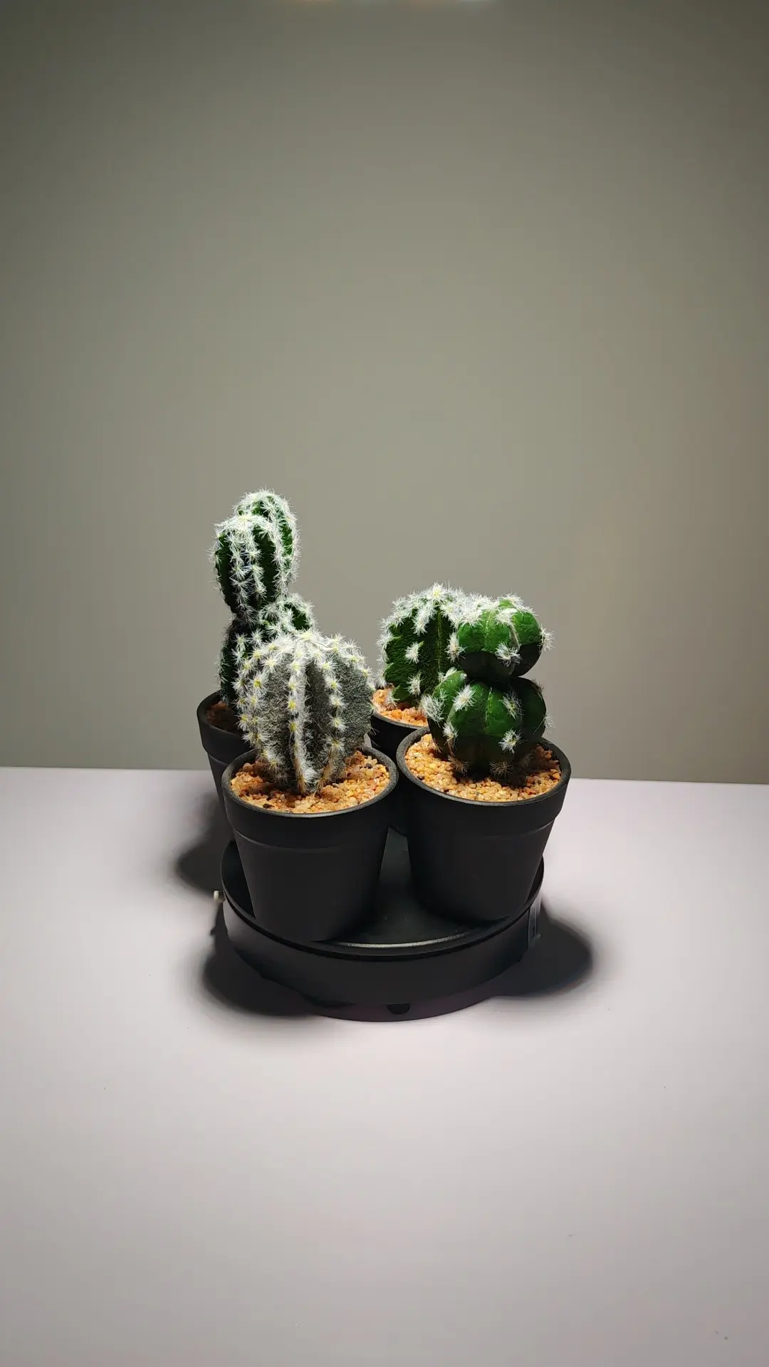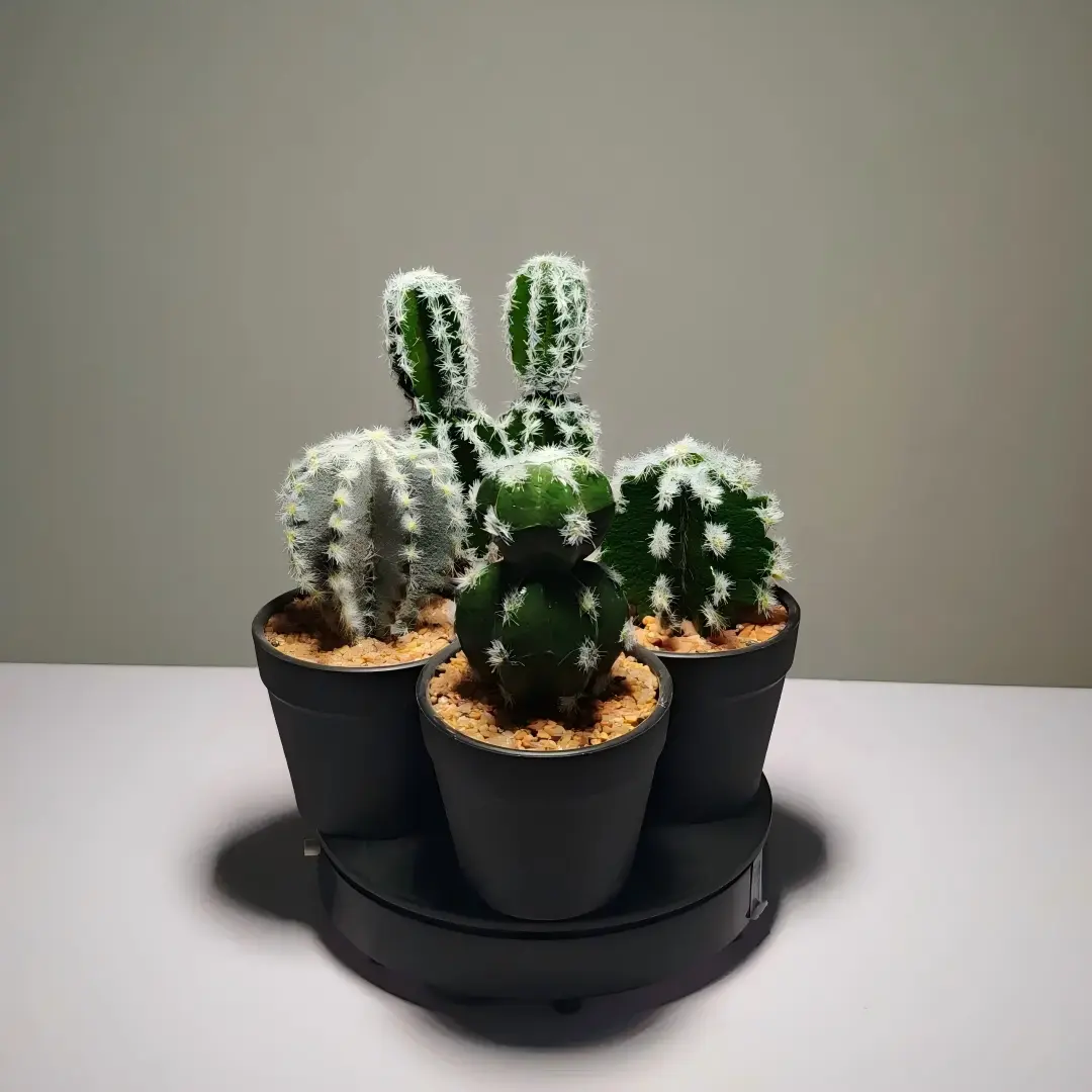 Este conjunto de cuatro suculentas artificiales, cada una de ellas regordeta y plantada en una maceta negra, encarna a la perfección un concepto de diseño inspirado en la naturaleza. Presenta hojas gruesas de color verde esmeralda dispuestas en una clásica forma de roseta, con puntas ligeramente puntiagudas y una textura suave. El centro verde claro de las hojas parece presagiar la aparición de nuevos brotes, aportando un toque de realismo al diseño general.